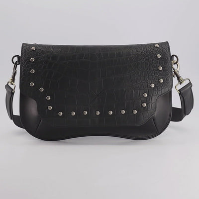 Le rabat KHARA en cuir Noir impression Croco pour base Star est la nouvelle capsule de cette saison. Un jeu de clous argentés sur son contour soulignent avec style les courbes du sac. Une allure décontractée, une pointe d'impertinence il a tout pour vous accompagner au fil des saisons.