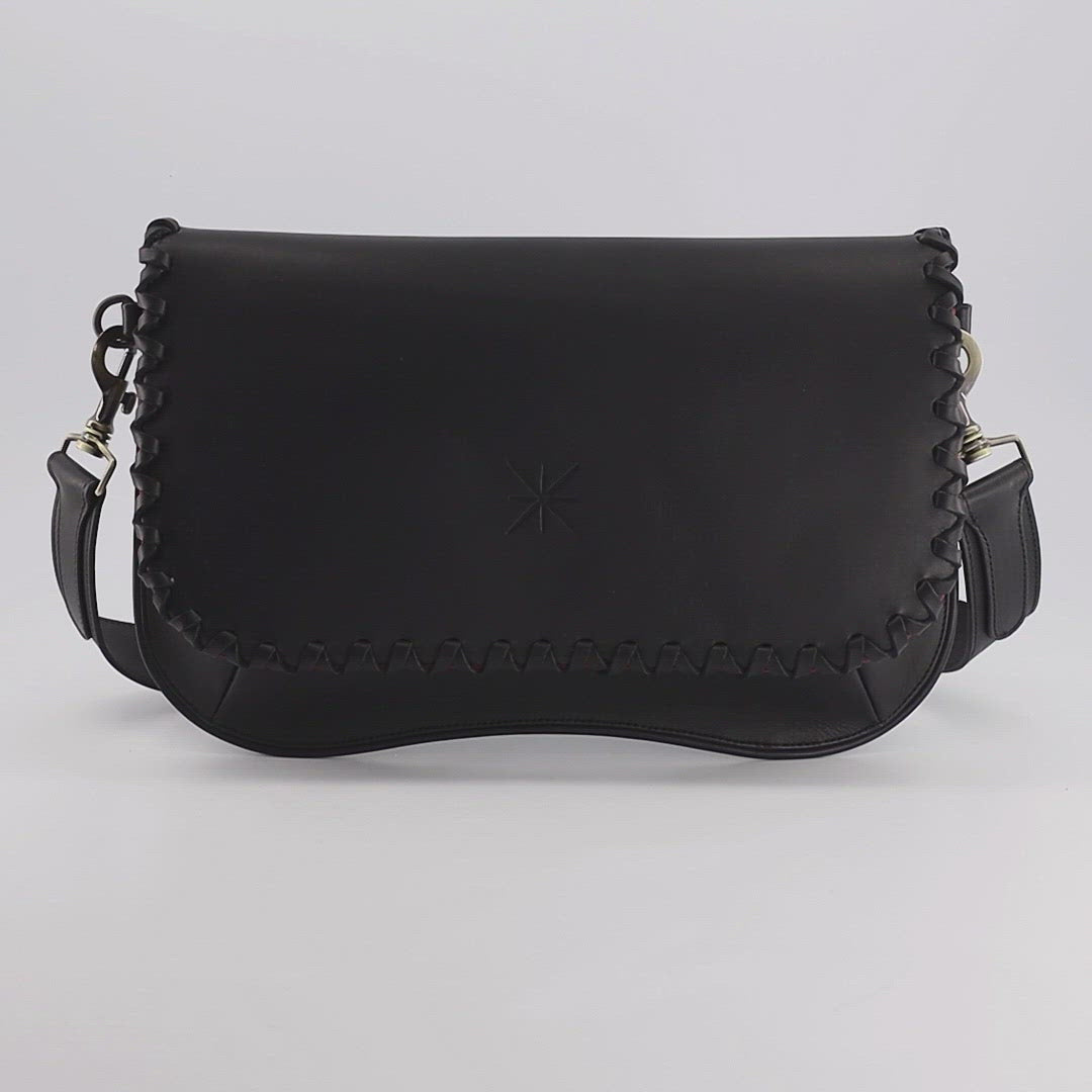 Le rabat TRESSA en cuir Noir pour base Star sobre et raffiné avec son tressage délicat, il vous accompagne avec aisance durant vos journées.